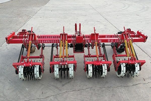 在除草功能上,适用于大豆、杂豆、马铃薯、花生、玉米、高粱、南瓜、向日葵等作物的平播、垄播、苗前、苗后的除草松土作业,培土铲总成同时完成对垄沟土壤的培土作业,垄距按需要进行调整,各组除草松土部件单体仿形作业,随垄、随行、随地仿形,仿形功能好,坡地作业性能强,对一年生的常见杂草,除草率达85%以上,尤其是对除草剂产生抗药性的红根苋菜及稗草,鸭趾草、荠、藜、谷莠子等浅根性早春杂草效果特别突出,可以不用化学除草剂或减少化学除草剂的用量,这就可以免除或减轻化学除草剂对作物造成的直接伤害,减少农药对作物的生长抑制时间7-10天,加快作物的生长发育,减轻除草剂在土壤中的残留及对后茬作物药害的影响,给作物的轮作创造了有利条件。